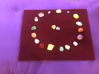 Lavender: Decreases levels of tension and absorbs dense and panic energies. Purple: Fascilitates writing materials, presentations and learning for exams and interviews as well as meetings where one is interrogated the energy to flow with Ease and Grace. Recharge: Hold under running water.